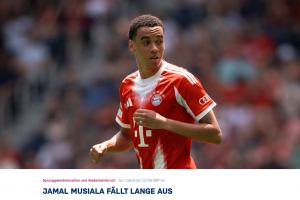 贾马尔-穆西亚拉在美国举行的世俱杯四分之一决赛拜仁慕尼黑vs巴黎圣日耳曼的比赛中遭遇重伤,不得不在中场休息时被替换下场。拜仁队医检查后发现,穆西亚拉遭受踝关节脱臼外加腓骨骨折。这位22岁的球员于周日早上从奥兰多飞往慕尼黑,并将于近期接受手术。